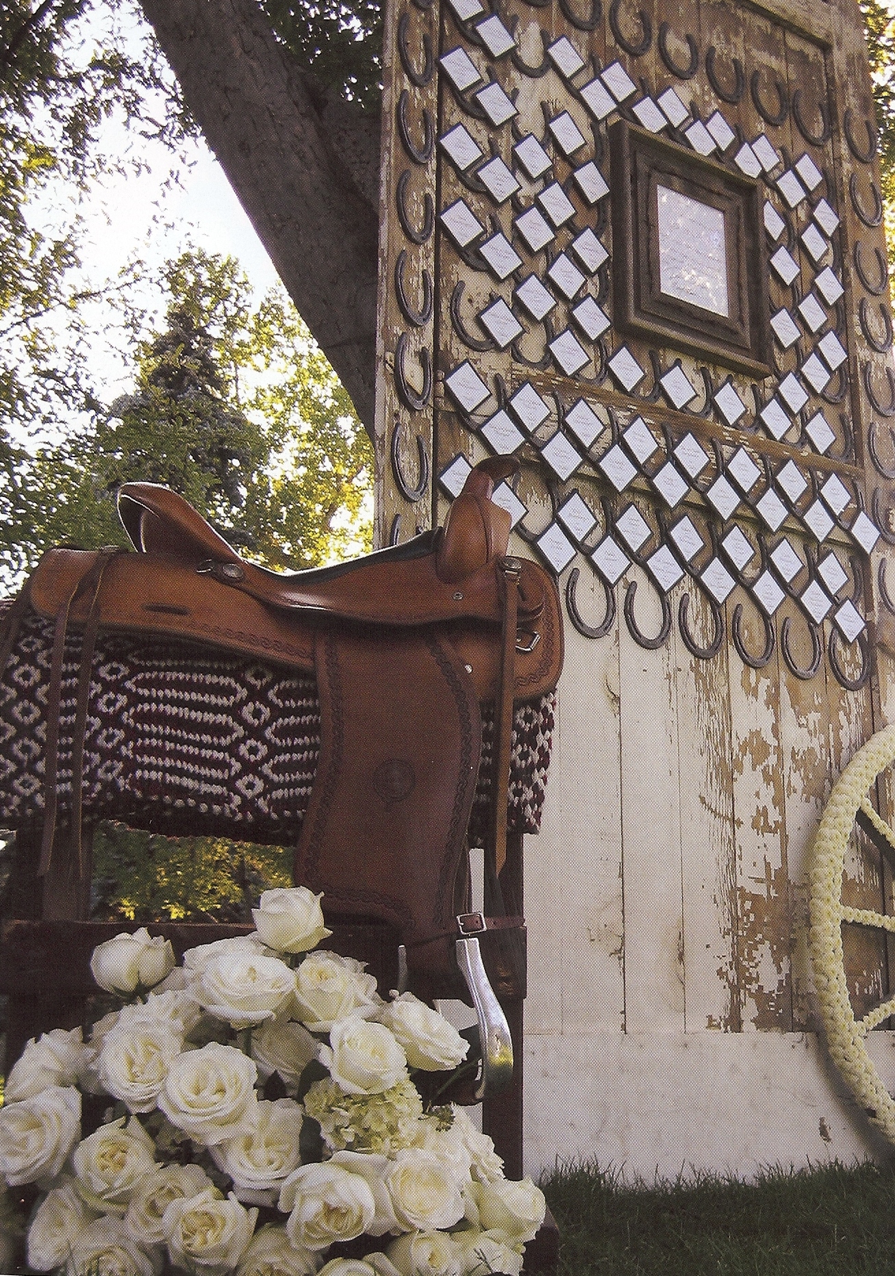 {Use old doors at your wedding to hang escort cards, in this case horseshoes. Beautiful.}