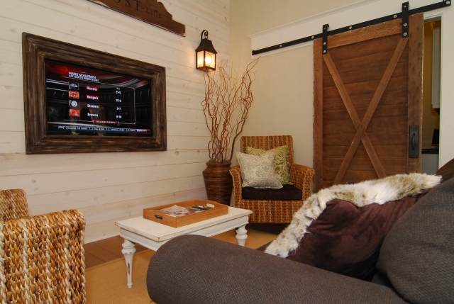 {I love the pop of color this yellow sliding barn door brings to the space.}