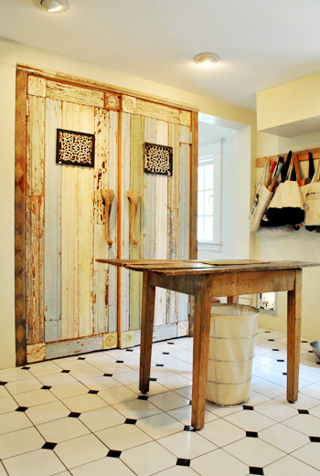 {These cool doors were made to hide the washer and dryer. I just adore the details. Stop by Young House Love for more home inspiration.}
